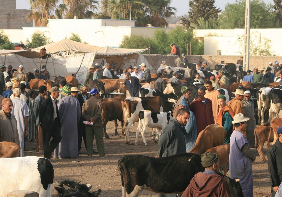 Chaque produit a son emplacement dans le souk. On y trouve aussi des aires pour les animaux.